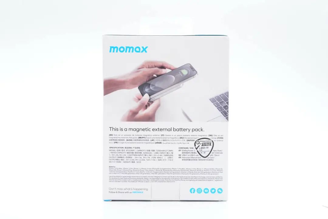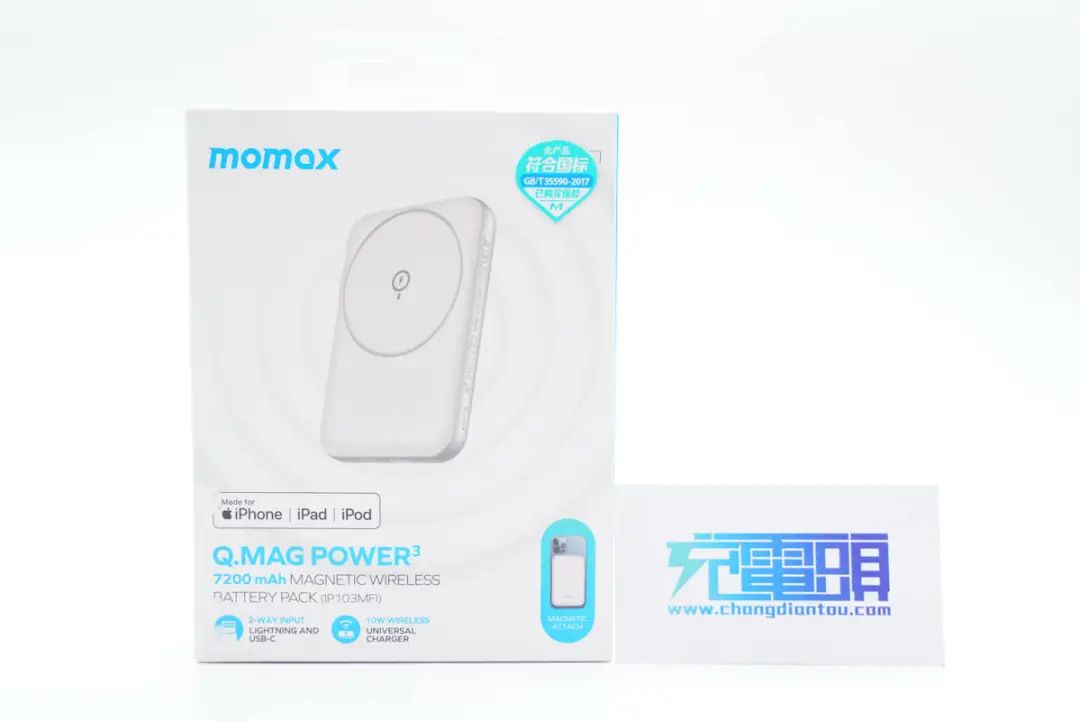 MOMAX摩米士Q.MAG POWER系列磁吸無線充移動電源有多個款式,為蘋果iPhone 12/13手機用戶提供豐富的選擇。最近充電頭網(wǎng)就拿到了該系列7200mAh磁吸無線充電移動電源IP103MFI。
