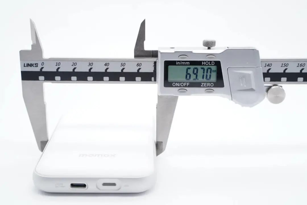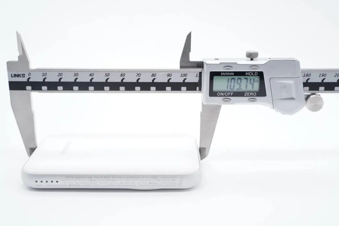 實測充電寶機身長度為109.74mm。