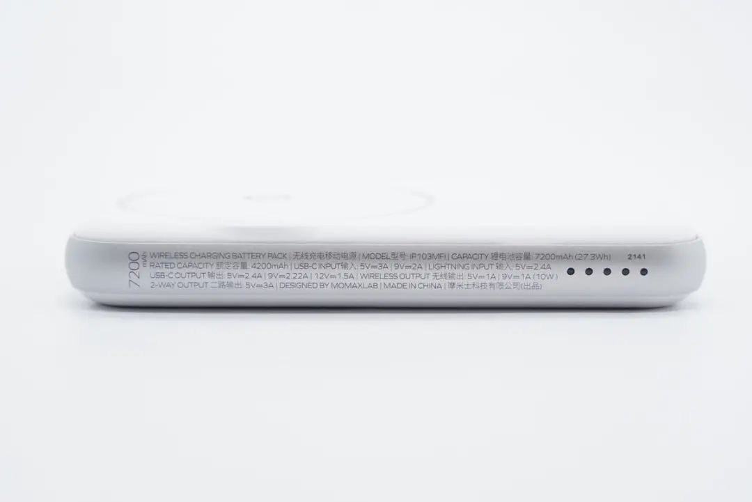 摩米士這款磁吸充電寶IP103MFI在內(nèi)置7200mAh容量電芯的情況下仍擁有比較小巧的機身,續(xù)航能力強同時磁吸充電時不會擋住攝像頭,支持邊充邊用。此外配有USB-C和Lightning口,支持20W有線快充,對于iPhone用戶來說帶線方面就變得十分簡便。產(chǎn)品還通過了蘋果MFi認(rèn)證,質(zhì)量有保證。