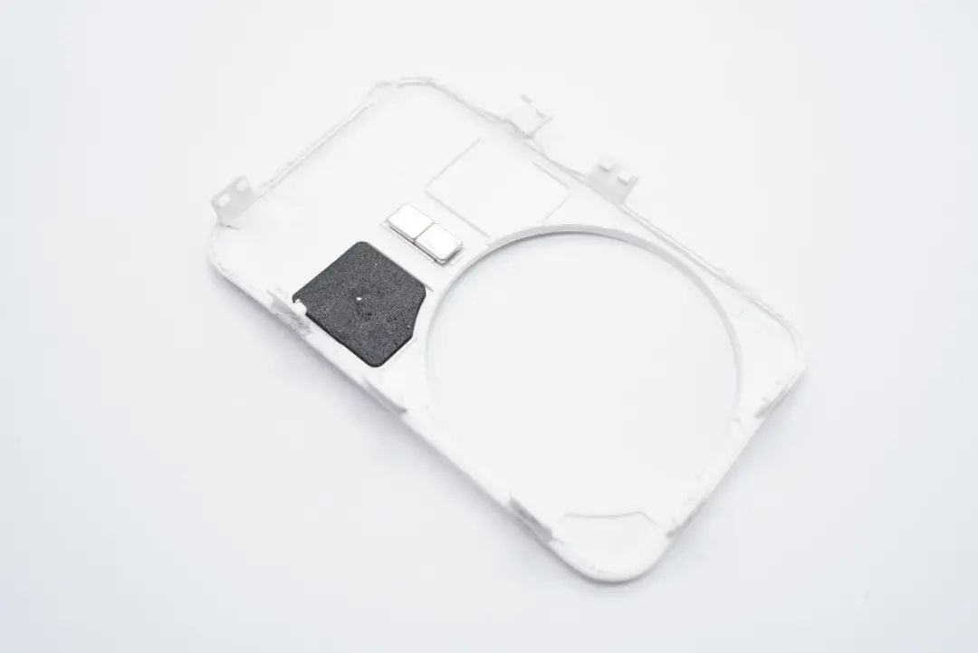 圓形外殼下有磁鐵環(huán)和無線充電線圈。