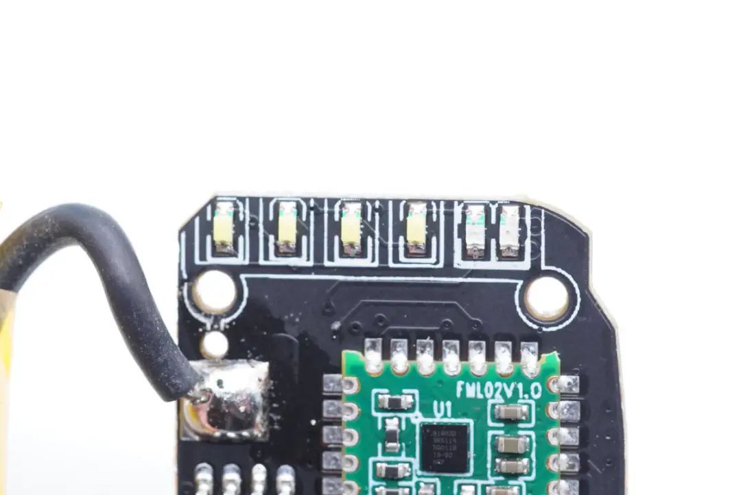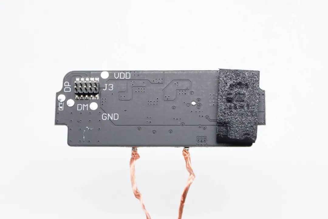 上層小板是無線充電路板,正面設(shè)有無線充電發(fā)射芯片、MOS管以及NPO諧振電容,并焊接無線充電線圈。