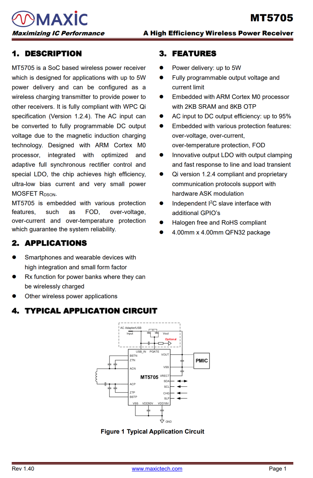 MT5705是一款基于磁感應(yīng)的無(wú)線充電接收器SoC(片上系統(tǒng)),采用嵌入式ARM Cortex M0處理器,2KB SRAM,8KB OTP,完全符合BPP的WPC Qi規(guī)范(版本1.2.4)。