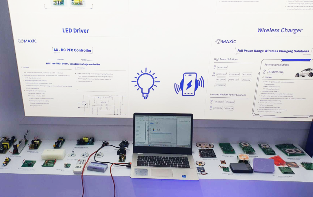 美芯晟也受邀出席此次展會(huì),為大家?guī)砹藷o線充電、AC-DC、光傳感器、恒流驅(qū)動(dòng)四個(gè)產(chǎn)品系列最新解決方案。