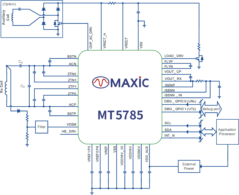 美芯晟最新推出MT5785,是一款基于磁感應(yīng)的SoC高集成無(wú)線充電接收芯片,集成了無(wú)線充電接收功能所需的一切,正向充電功率高達(dá)100W,同時(shí)具有Tx發(fā)射功能,反向充電功率18W。該芯片具有高功率、高性能、高集成度等特點(diǎn),在國(guó)內(nèi)外均屬于高端芯片,已在榮耀Magic 4 Pro/至臻系列等最新推出的旗艦手機(jī)上成功實(shí)現(xiàn)量產(chǎn)。