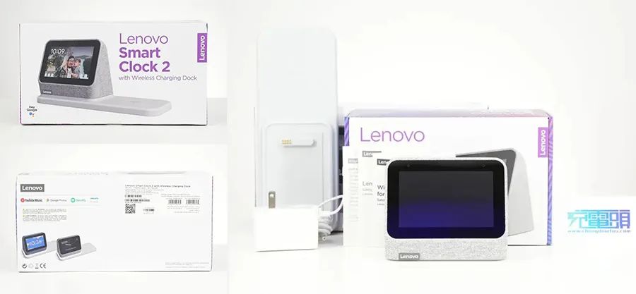 包裝盒正面印有Lenovo品牌、產(chǎn)品英文名稱以及外觀圖;底部印有產(chǎn)品款式外觀圖、支持功能以及型號等信息;包裝內(nèi)含時鐘、底座、適配器、說明書等。