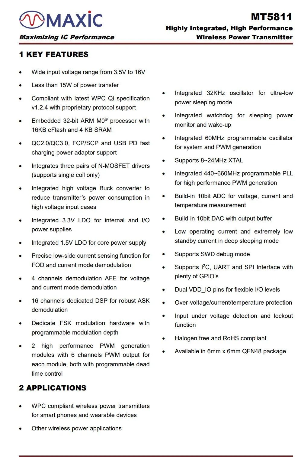 MT5811可延展性強(qiáng),配置定制化,采用高集成嵌入式SoC架構(gòu)及靈活接口設(shè)計,適用于各種低成本、低功耗應(yīng)用,可廣泛應(yīng)用于為5G智能終端、智能可穿戴設(shè)備、智能家居、物聯(lián)網(wǎng)、智能家電進(jìn)行無線充電的設(shè)備。